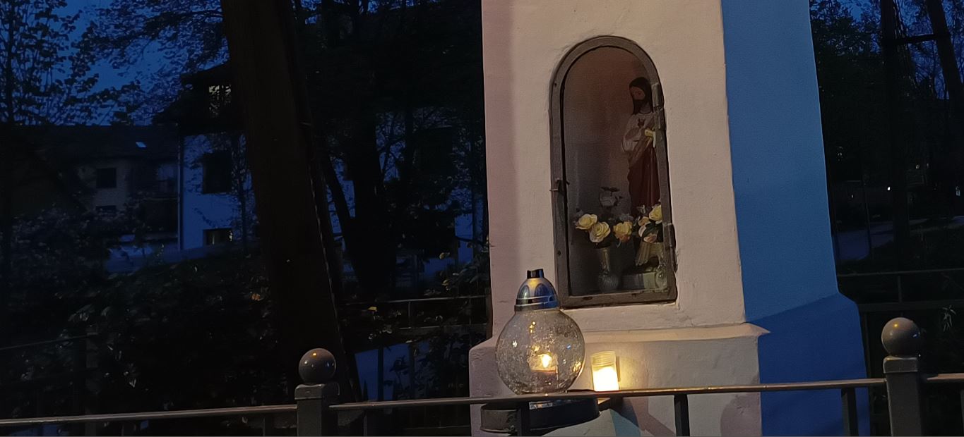 Kapliczka przy ulicy Filtrowej, przy której w maju chętnie się modlimy, obok której stale rowerujemy, czy spacerujemy...